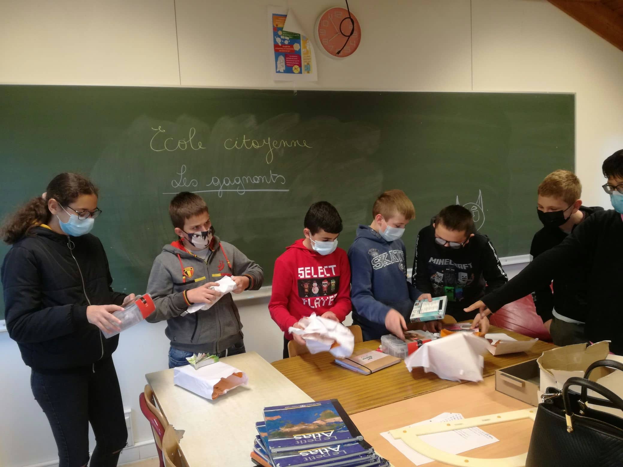 Remise des prix pour le concours de logos pour le projet bibliothèque de l’école citoyenne.